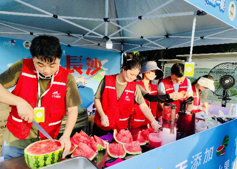 长沙新农人将丰收果实从枝头带上橘子洲头 10万份果汁免费赠游客清凉一夏