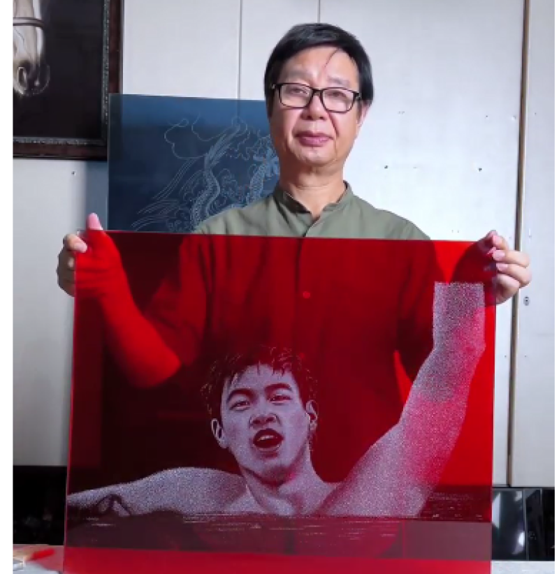 非遗里的奥运丨他用锤子在玻璃上作画,致敬奥运健儿!①“中国飞鱼”潘展乐