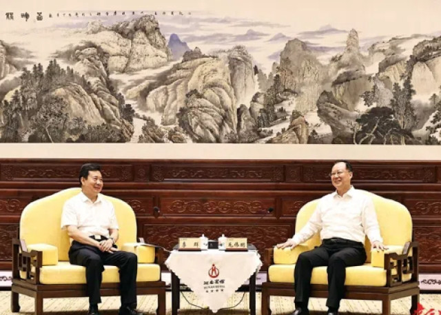 毛伟明与出席马王堆汉墓发掘50周年研讨会嘉宾座谈