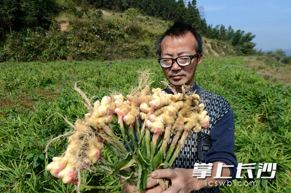 正是生姜采摘季。今日,宁乡县沩山乡沩水源村村民俞国军又来到自家的20亩生姜基地。他的生姜长得郁郁葱葱,煞是喜人,但俞国军的脸上却没有太多喜色:“生姜马上就有收成了,但销售渠道不畅,还不知道能不能卖个好价钱呢!”