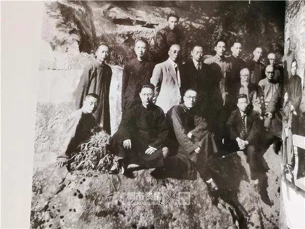 在新市街的家里,王佩智翻开桌上一本《西泠印社老照片》集,里面有一张黑白相片,排排站了许多人,这是1947年,印社补行建社40周年庆典时部分社员在孤山闲泉前的合影。站在最左边的是一个精瘦的男人,留平头,穿一件灰色长褂,“这个,就是叶秋生。”