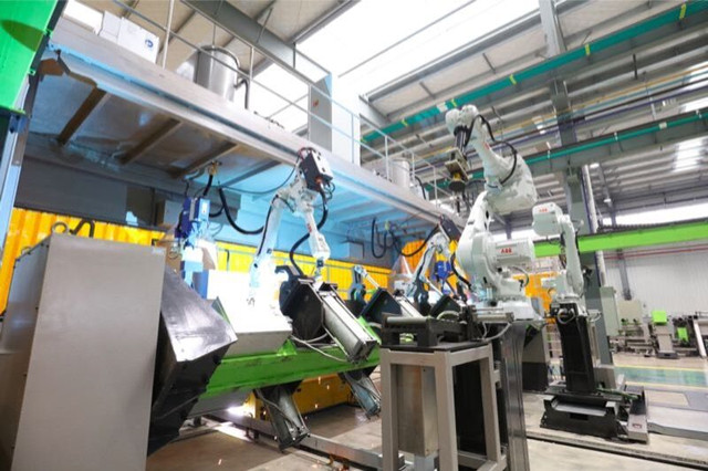 (中联重科全球最大塔机智能工厂里有一万多个传感器、一百多台工业机器人、35台rgv/agv无人搬运小车、16套数控加工中心。中联供图)
