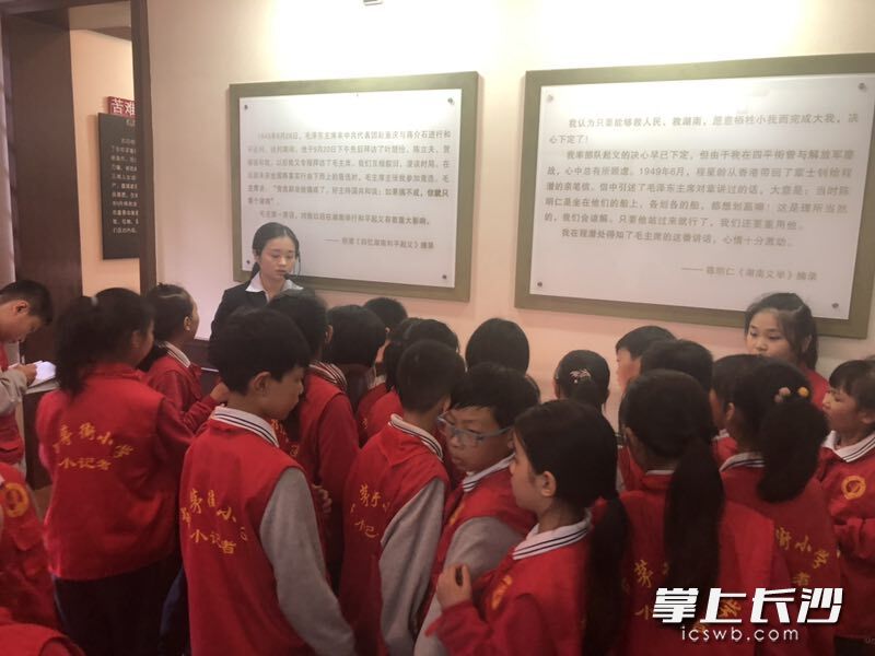 在东茅街小学的教室里,由长沙博物馆原副馆长、长沙近代史专家周英副研究员为学生们带来新颖生动的历史课,通过室内课堂与户外欣赏,参观《湖南和平解放史事陈列馆》、《湘江评论》印刷处旧址等,让学生们身临其境,深刻感知百年前的长沙历史文化。