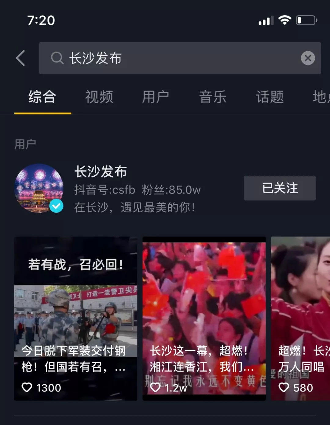 ① 下载并打开抖音短视频app,搜索关注“长沙发布”抖音号获得参赛资格;