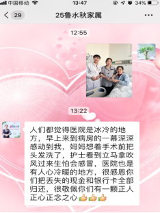直到晚上9时,在院25床左膝多发韧带损伤患者鲁水秋在准备去补交住院费用时,才发现放在病号服里的现金和银行卡遗失了,银行卡里有余额5.5万余元,遂急匆匆的找到护士长确认遗失的现金和银行卡。由于晚上银行下班无法确认卡的信息,第二天一大早,护士长带患者及家属一起去银行确认了身份,证实了银行卡正是患者鲁水秋的。回病房后,护士长与张正华将拾到的现金和银行卡归还到失主及家属手中。