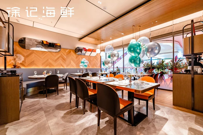 作为徐记海鲜第一家商业体店,在坚持徐记一贯的服务理念之上,华创店融汇了轻餐饮的环境特色。