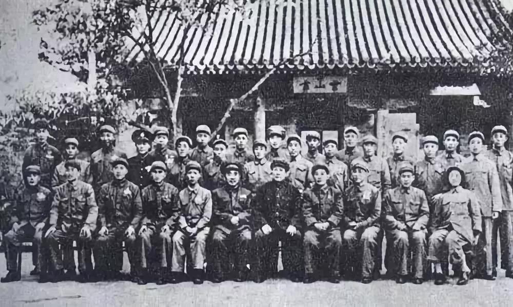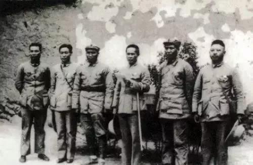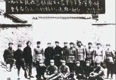 ▲1927年9月,参加秋收起义的部分同志1937年5月9日在延安合影,左三为毛泽东。