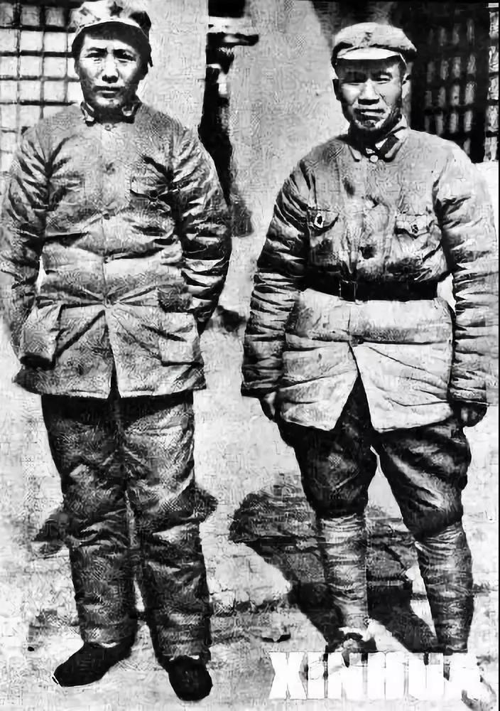 ▲1936年长征胜利后,毛泽东和朱德到达陕北后合影。