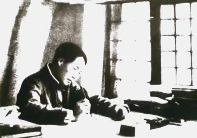 ▲1938年5月,毛泽东发表《抗日游击战争的战略问题》和《论持久战》,确定了抗日战争的战略方针。图为毛泽东在延安窑洞撰写《论持久战》。