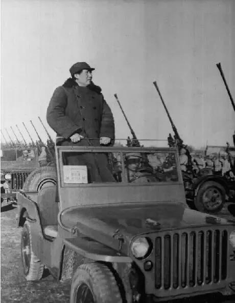 ▲1949年3月,毛泽东检阅我军第一支高炮部队。