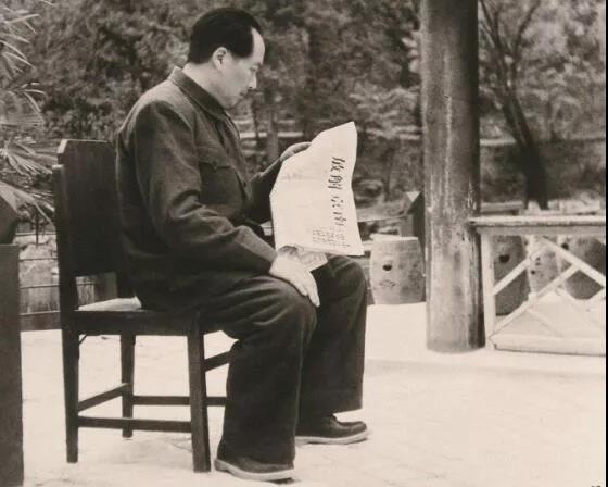▲1949年4月下旬,毛泽东在北平香山双清别墅看解放南京的捷报。