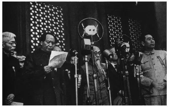 ▲1949年10月1日,毛泽东在天安门城楼上向全世界庄严宣告:中华人民共和国中央人民政府今天成立了。