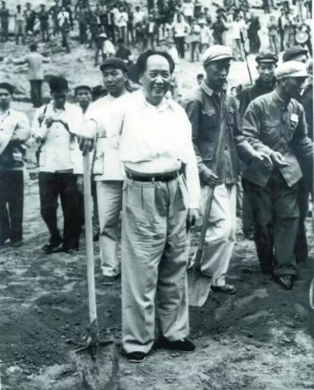 ▲1958年5月25日,毛泽东到十三陵水库参加劳动。