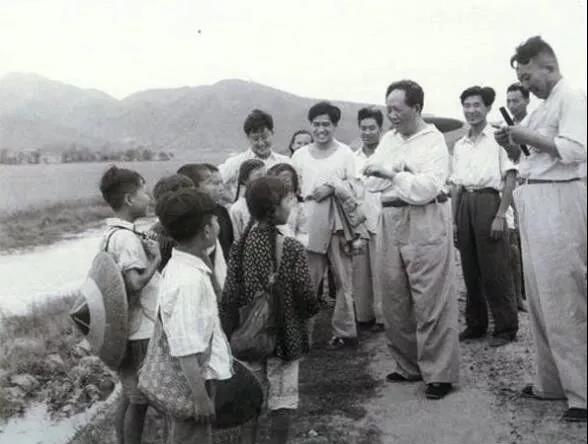 ▲1959年6月毛主席在韶山的田埂上与学生们交谈。