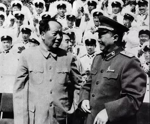 ▲ 1959年10月,毛泽东主席和周恩来、贺龙接见受阅部队代表。
