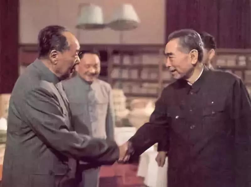▲1974年,毛泽东和周恩来在中南海亲切握手。