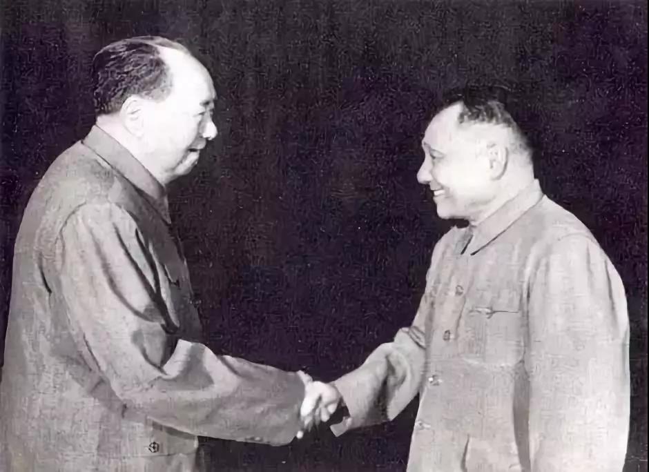 ▲1974年底,毛泽东主席与邓小平同志亲切握手。