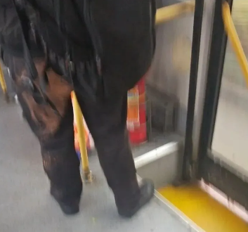 到站后,一位男士站在网友前面,看到他的裤子大面积褪色。