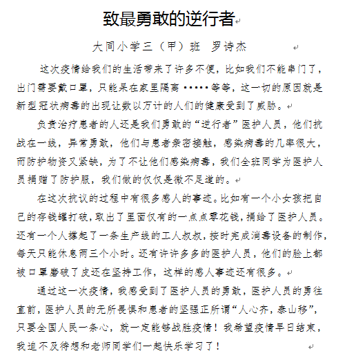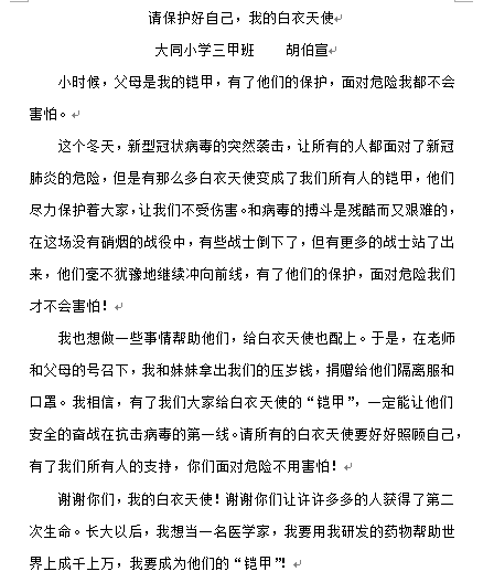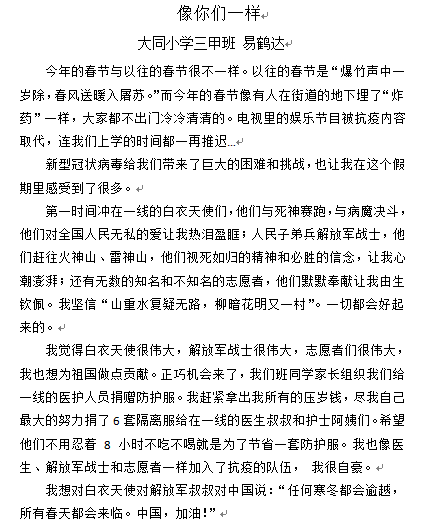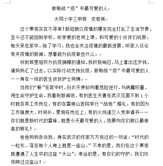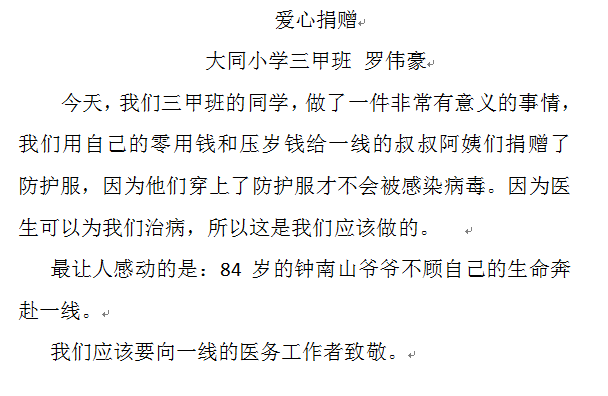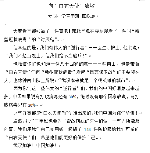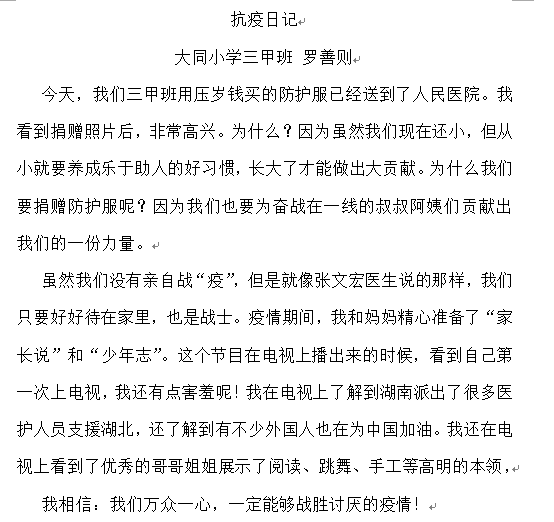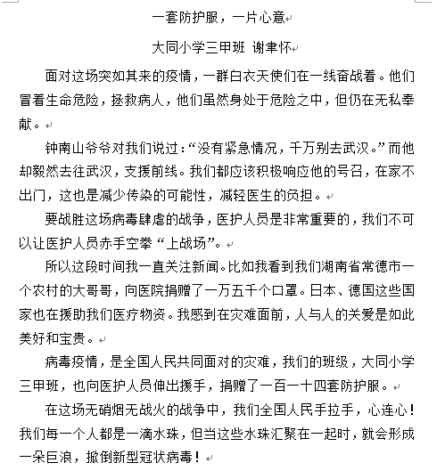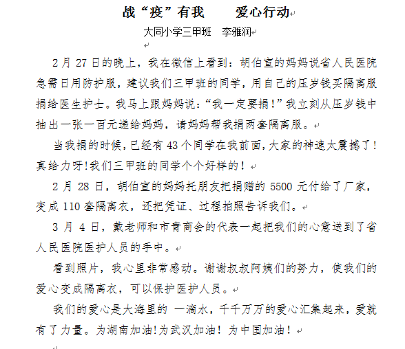 你们捐赠的压岁钱,已经变成114套防护服,正式送到了湖南省人民医院的医生护士们手里!看到“大同小学三甲班捐赠”这几个大字,黄老师的眼眶湿润了,我为你们骄傲!