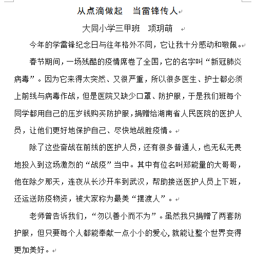 长沙市芙蓉区大同小学义捐抗疫情 雷锋精神永传承-九游网址