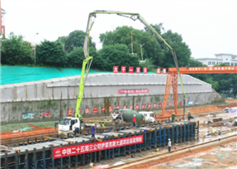 记者今日在京广铁路东侧看到,跨线桥梁施工已全面展开,工人们正忙着对最后一根完工的桩基进行混凝土浇筑施工,同时在百余名工人正进行铁路东侧预制梁模板试拼、墩柱盖梁、现浇箱梁钢筋模板及预应力施工,铁路西侧正在进行跨京广铁路桥下部结构施工。