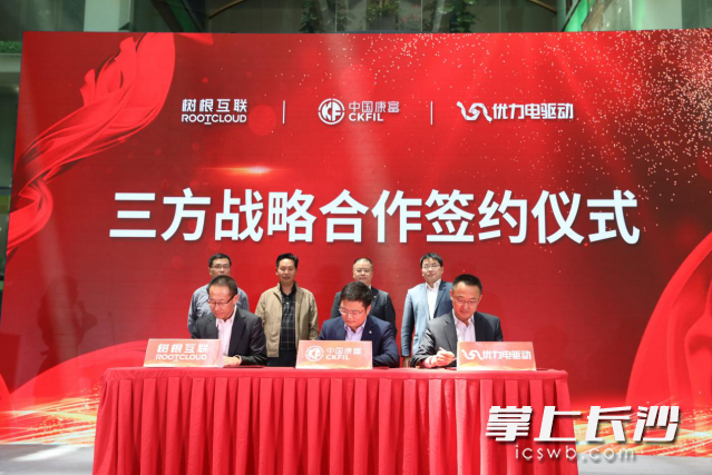 长沙晚报掌上长沙4月27日讯(全媒体记者 伍玲)今日,由中国康富国际租赁股份有限公司、树根互联技术有限公司、优力电驱动系统有限公司主办的战略合作签约暨新运力平台启动仪式在三一工业园魔豆仓举行。