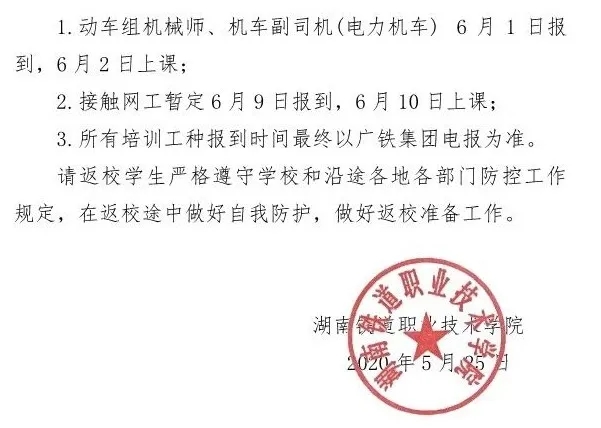 4.请返校学生按照《返校须知》要求做好相关准备,并在返校途中做好自我防护,确保安全。 5.学校实行封闭管理,全体师生员工要积极配合做好新冠肺炎疫情常态化防控工作。湖南汽车工程职业学院
