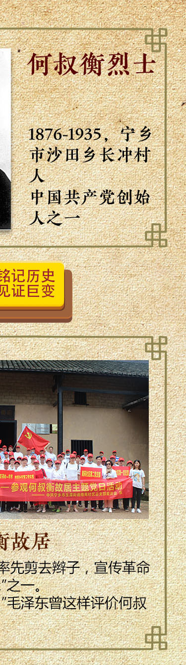 七一互动海报 | 这盛世,如您所愿-九游网址 稿源:掌上长沙2020-07-01 6:15 您的浏览器不支持 audio 标签。 在新中国成立前,长沙有一批优秀的共产党人为了新中国不惜抛头颅、洒热血,献出了自己宝贵的生命。 他们没有看到新中国成立后翻天覆地的变化,实为遗憾;但是,后来者没有辜负他们的期待,值得欣慰。 七一前夕,本报记者来到长沙的革命老区,走访四位烈士所在的村庄,感悟红色情怀,铭记红色历史,见证今朝巨变。望城区铜官街道郭亮村长沙县开慧镇飘峰村浏阳市张坊镇白石村宁乡市沙田乡长冲村 >> 【作者:颜开云 颜家文 张禹 朱华 张日 谭伟 赖立 罗敏】 【编辑:谭伟】 长沙晚报社九游网址的版权声明 关键词:烈士 >>我要举报