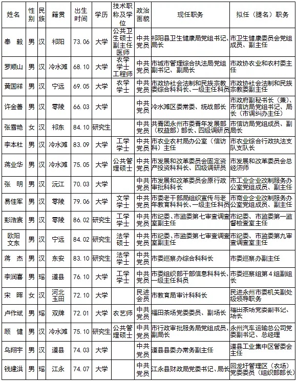 永州18名市委管理干部任前公示
