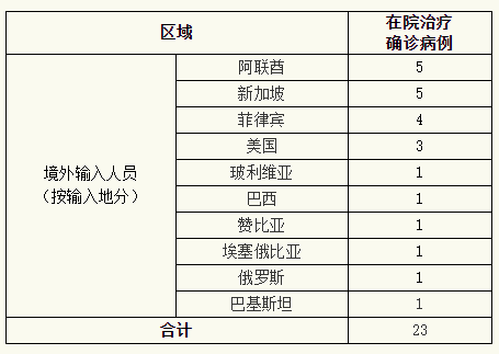 截至8月5日24时,累计报告境外输入性确诊病例415例,治愈出院392例,在院治疗23例。现有待排查的疑似病例1例。