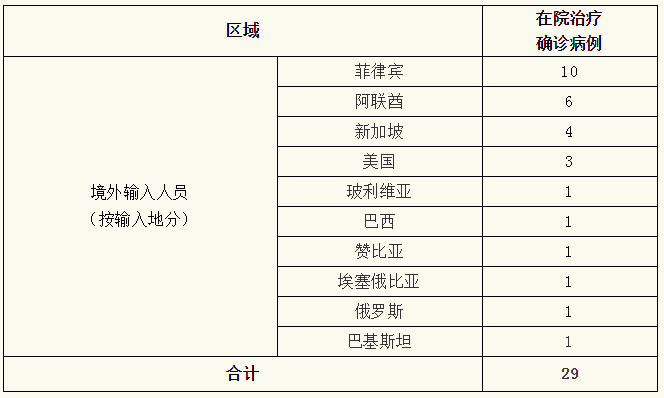 截至8月6日24时,累计报告境外输入性确诊病例422例,治愈出院393例,在院治疗29例。现有待排查的疑似病例2例。