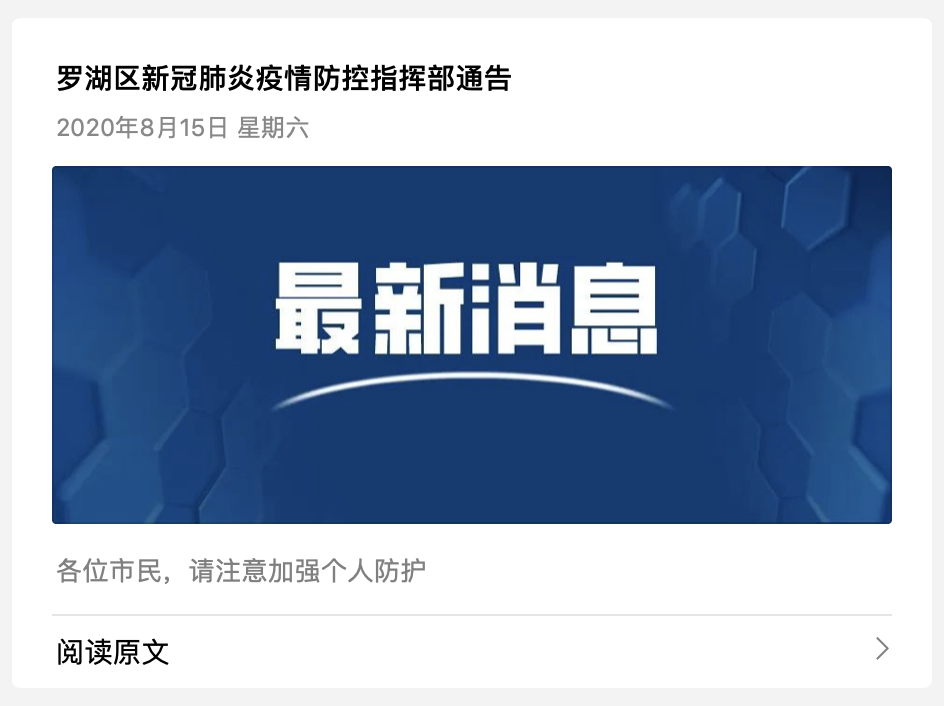 今天(15日)凌晨,深圳罗湖区委宣传部官方微信“新时代新罗湖”发布最新通告,公布其中一名核酸检测阳性男子所住小区。