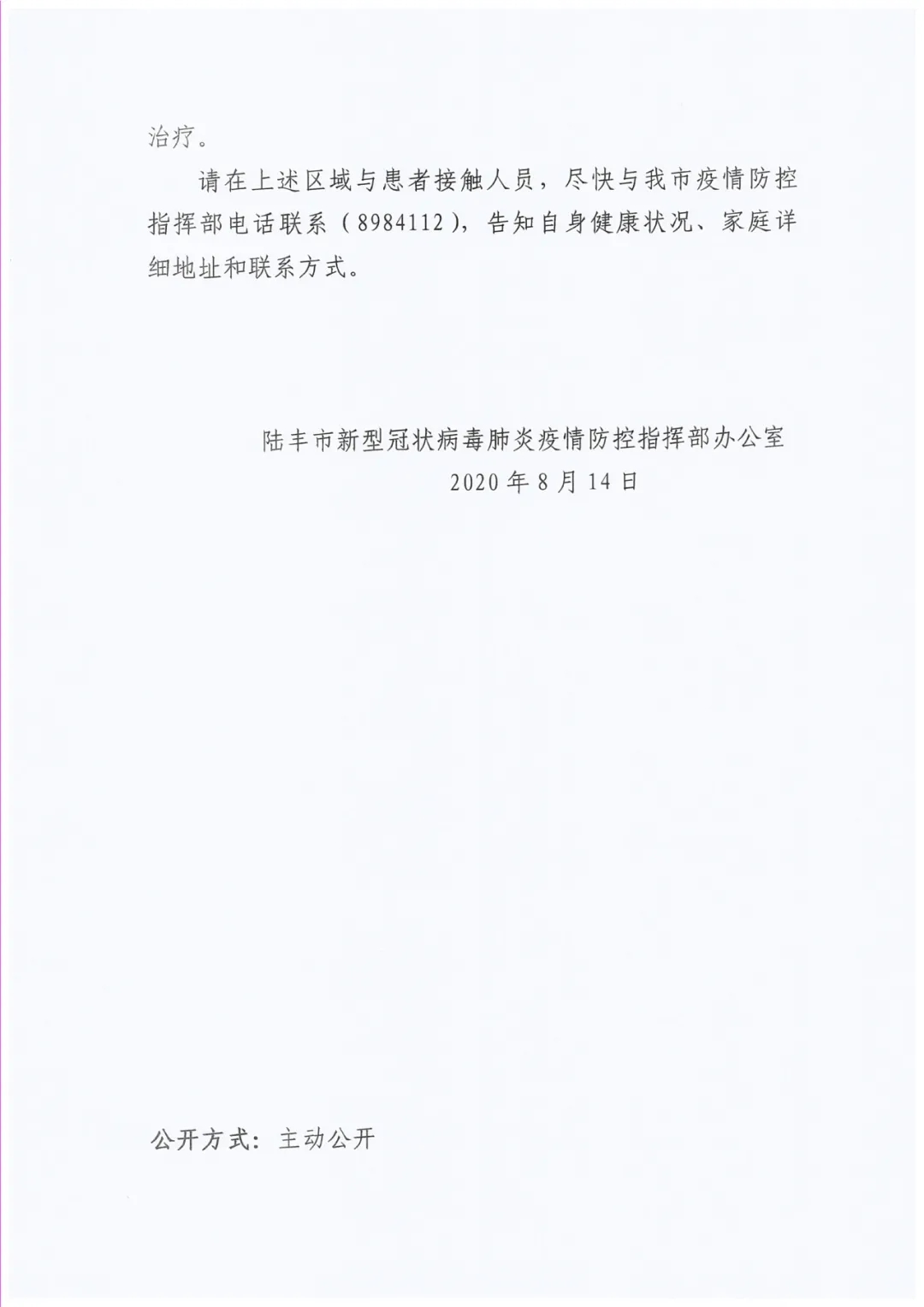 另外,今天(15日)凌晨,“今日陆丰”发布通报,公布陆丰市确诊患者的活动轨迹。