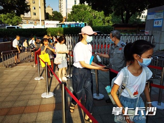记者在雨花区小学报到现场看到,学校采取扫码预约、年级错时安排报到、设立体温检测、手部消毒路线等方式多措并举,避免了开学报到出现大量人员聚集的情况。报到现场秩序井然, 好多家长也自觉戴上了口罩。