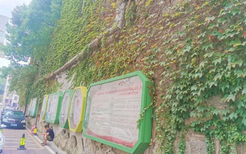 彩绘护坡再添风景线。医院里有两处护坡不适合绿化,大片光秃秃的石墙严重影响了美观。近日,我院聘请专业人士对这两处护坡进行了彩绘,以一种流动、舒缓、自然的设计,与周围的绿植有机结合联系起来,形成一幅清丽的水彩画,气韵流淌。