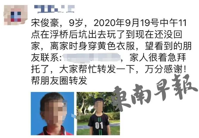 9月21日上午一条9岁男孩的寻人信息在很多人的朋友圈刷屏