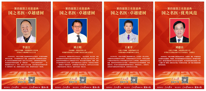 会上,湖南省共有6位专家荣获“国之名医”荣誉称号,其中4位来自湘雅二医院:精神病学科李凌江教授、心血管外科刘立明教授、疼痛科王亚平教授荣获“第四届国之名医· 卓越建树”荣誉称号,消化内科刘德良教授荣获“第四届国之名医· 优秀风范”荣誉称号。