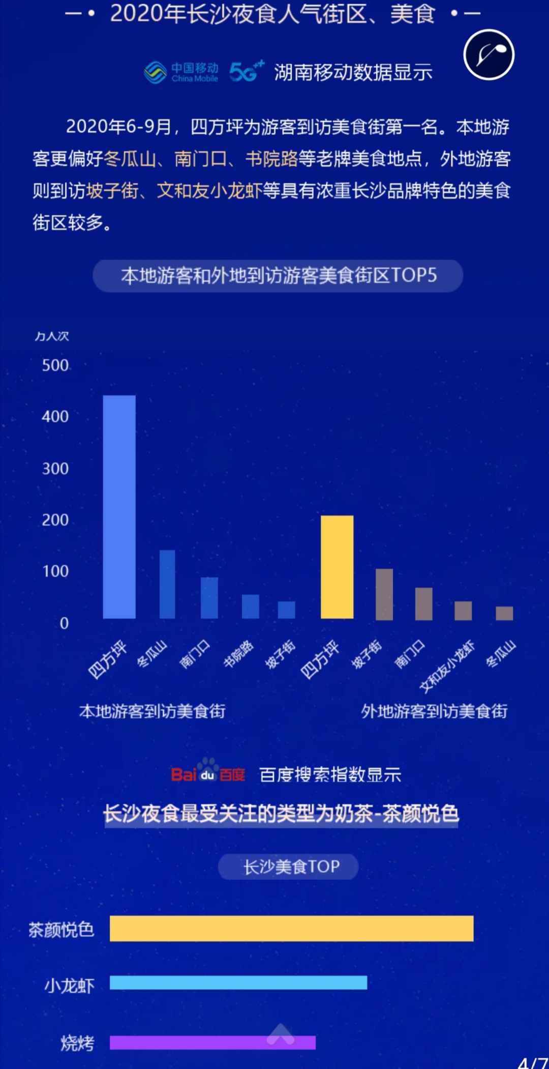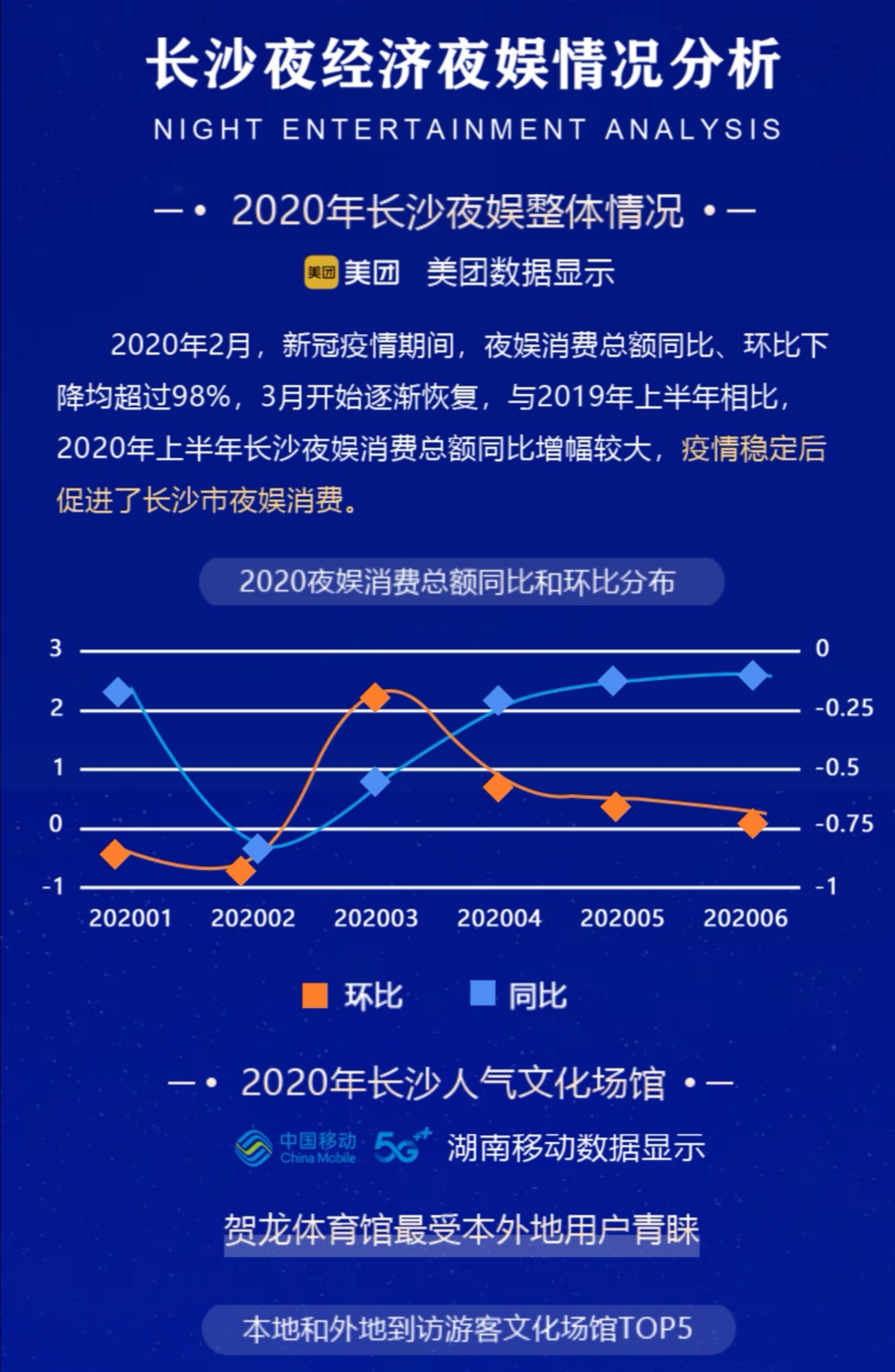 据悉,《报告》由市数据资源管理局牵头制作发布,依托目前在建的长沙城市超级大脑数据中台,同时拉取美团、携程旅行网、百度和湖南移动等生活服务性平台数据,从长沙城市夜经济整体情况、主体结构、人气商圈、夜宿品质、夜食街区、夜娱文化、夜游景区等维度开展了数据分析,是首份由官方发布的长沙城市夜经济大数据报告。