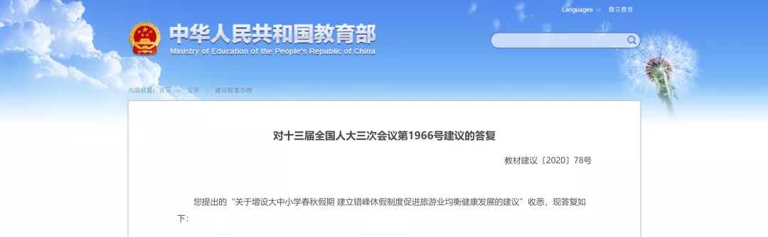 中国青年报注意到,这并非教育部第一次回应与“大中小学春秋假期”有关的建议。