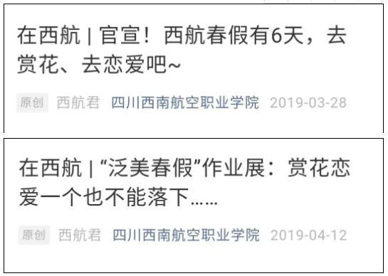 2019年,四川西南航空职业学院在放假时间总量不变的情况下,4月初放6天春假,主题为“去赏花、去恋爱”。