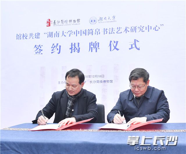 长沙晚报掌上长沙12月18日讯(全媒体记者 任波 通讯员 管震)18日上午,“湖南大学中国简帛书法艺术研究中心”签约揭牌仪式在长沙简牍博物馆(以下简称“简博”)举行。