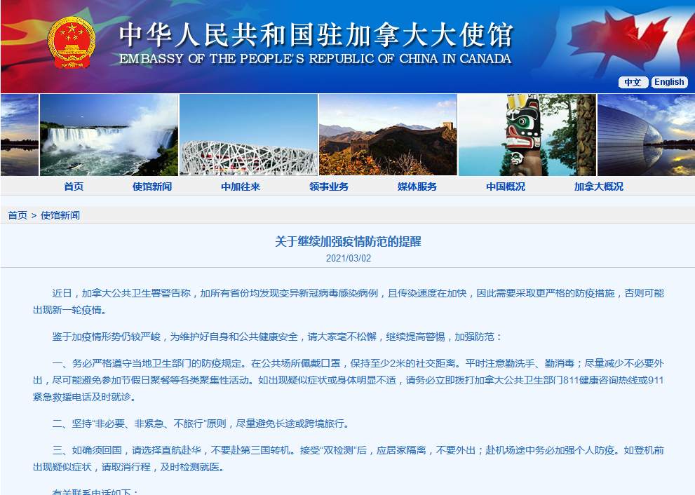 加拿大所有省份均发现变异新冠病毒感染病例,中使馆发布提醒-九游网址