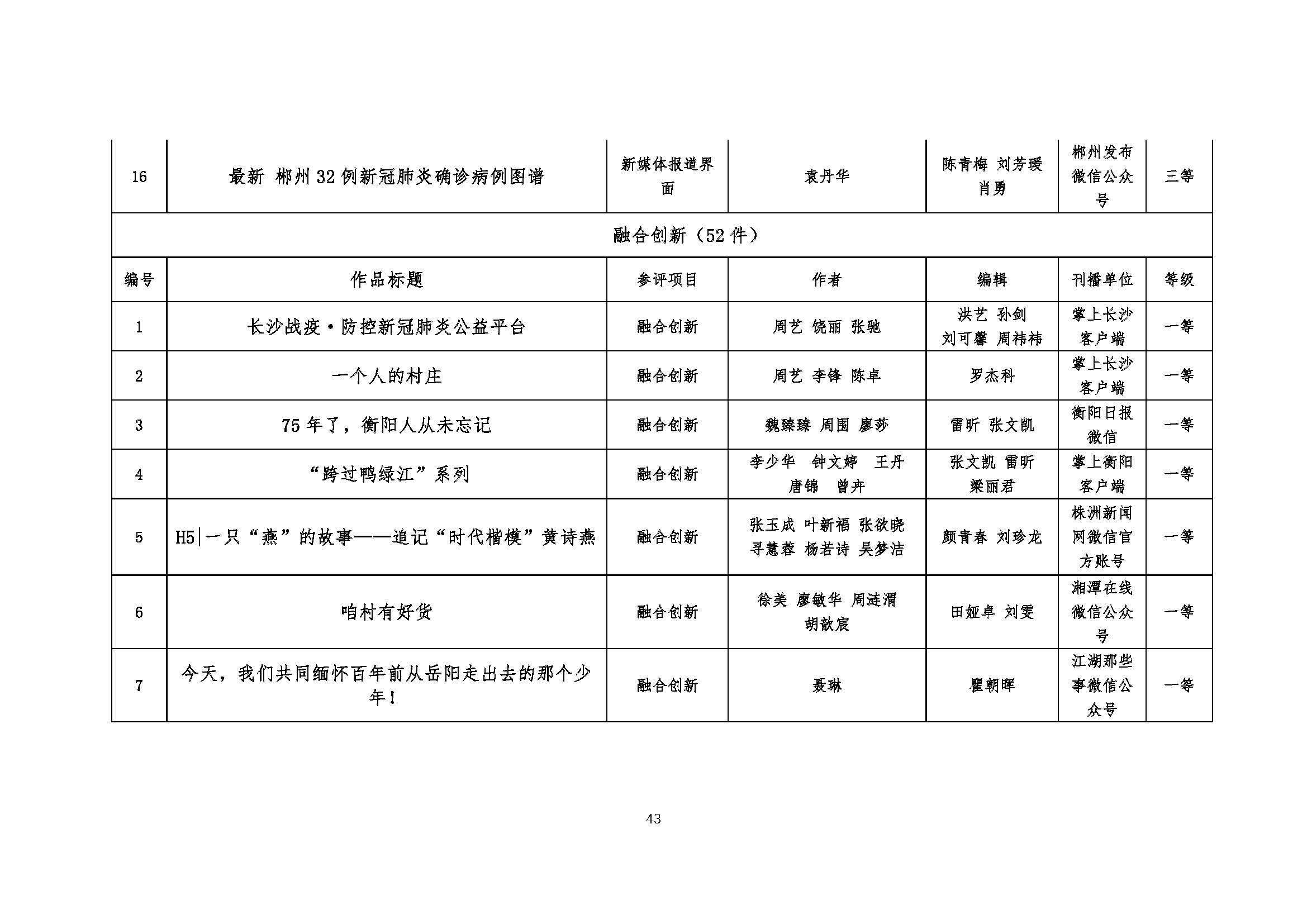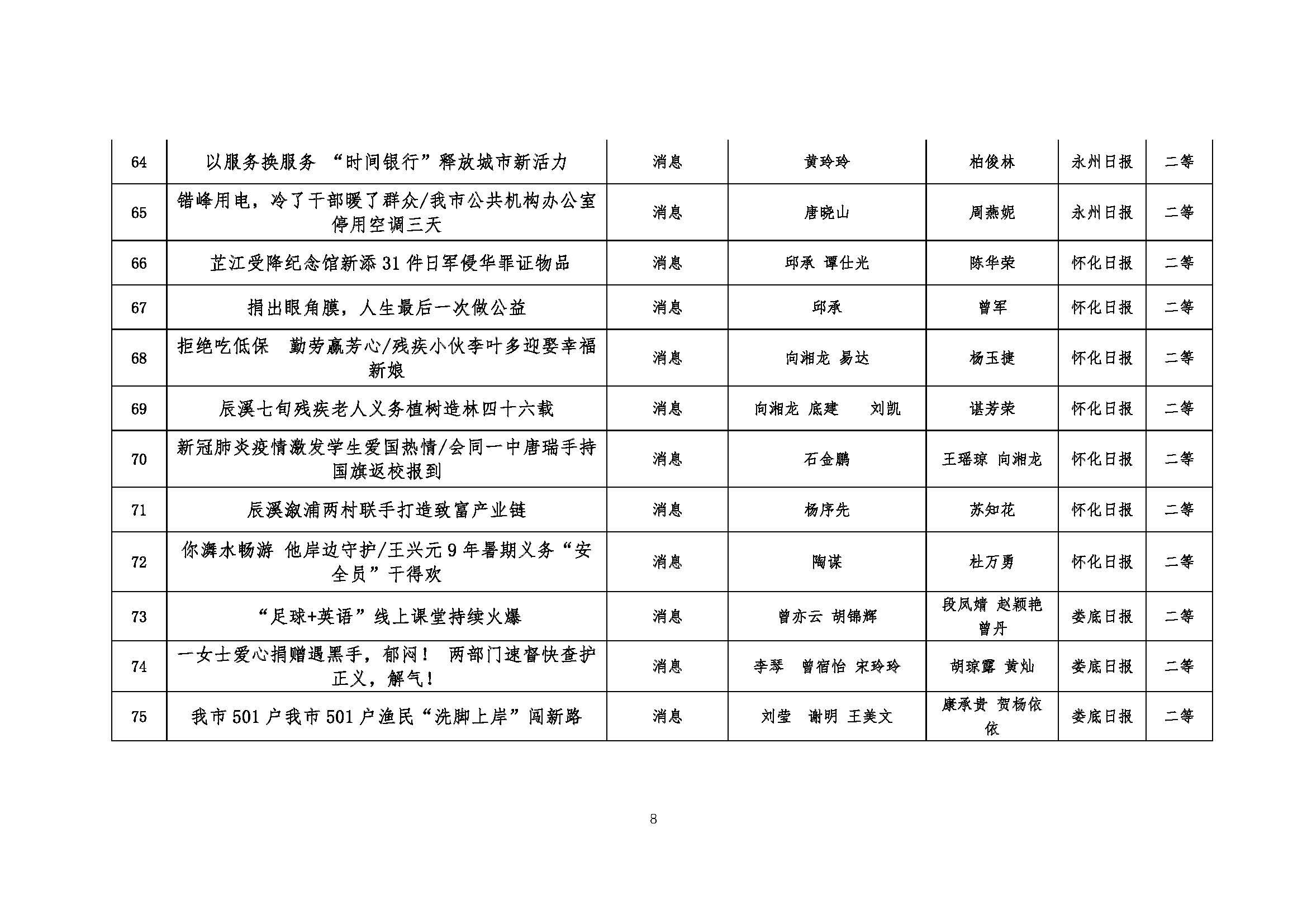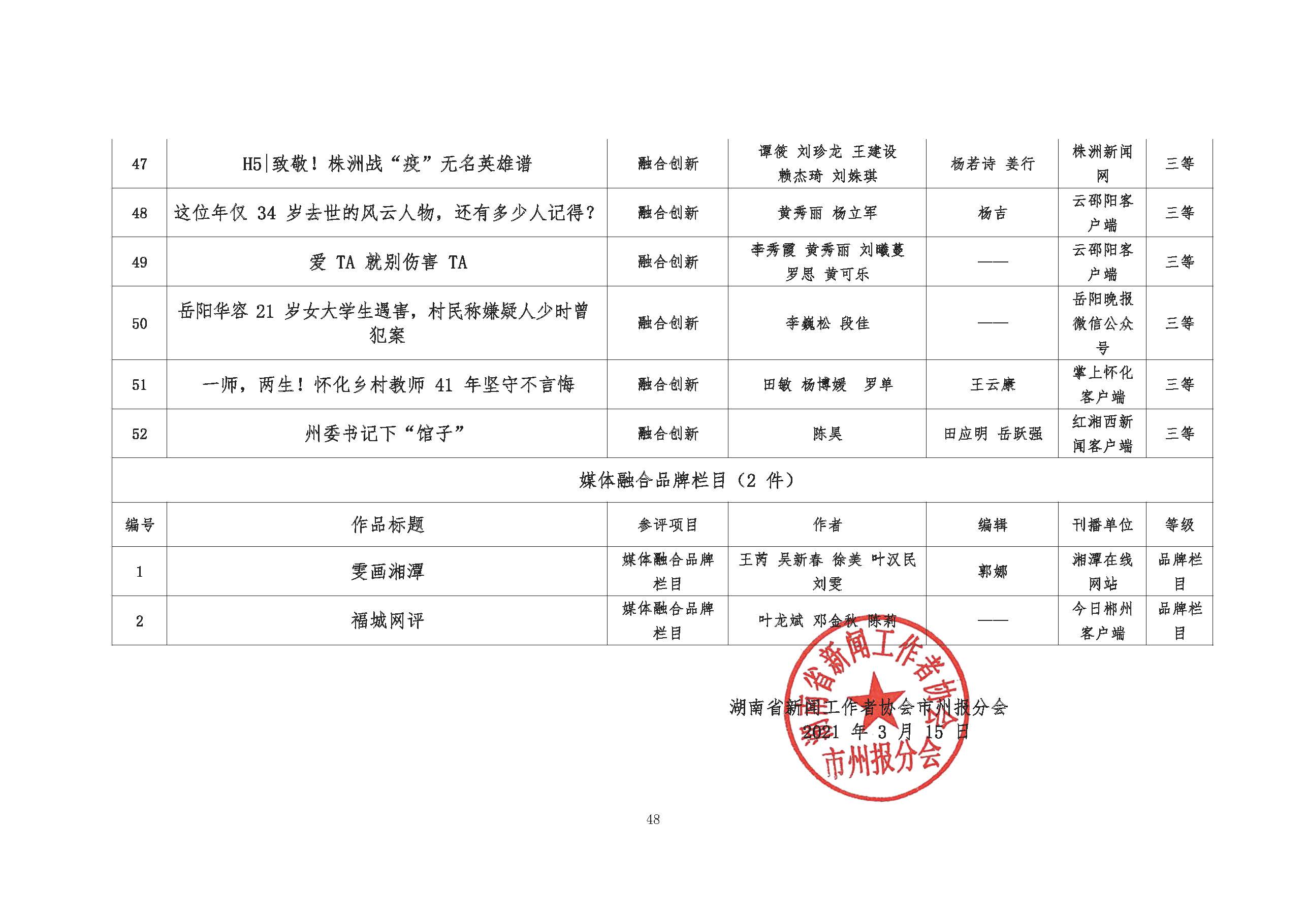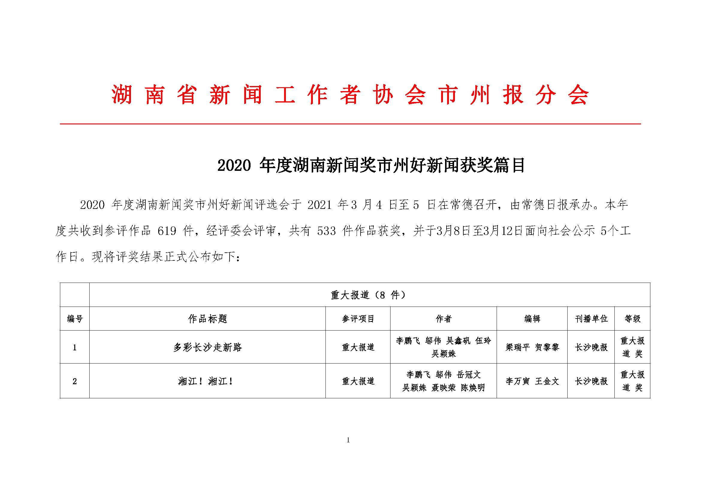 2020年度湖南新闻奖市州好新闻获奖篇目-九游网址 稿源:掌上长沙2021-03-15 11:14 您的浏览器不支持 audio 标签。 长沙晚报掌上长沙3月15日讯 2020年度湖南新闻奖市州好新闻评选会于3月4日至5日在常德召开,经评委会评审,共有533件作品获奖! 湖南省新闻工作者协会市州报分会发布《2020年度湖南新闻奖市州好新闻获奖篇目公示》,3月8日至12日面向社会公示5个工作日后,现将评奖结果正式公布。 【作者:】 【编辑:谭伟】 长沙晚报社九游网址的版权声明 关键词:湖南新闻奖 市州好新闻>>我要举报