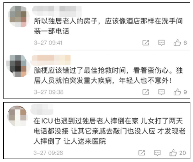 如果家中有独居老人,子女们应该多关注他们的健康安全,每天至少要打一个电话问候身体情况。有必要的应该在家中安装监控系统,随时能照看到老人的情况。有能力最好是把老人带在身边照看,每个人都会变老,老吾老以及人之老!关注老人健康,从身边做起!