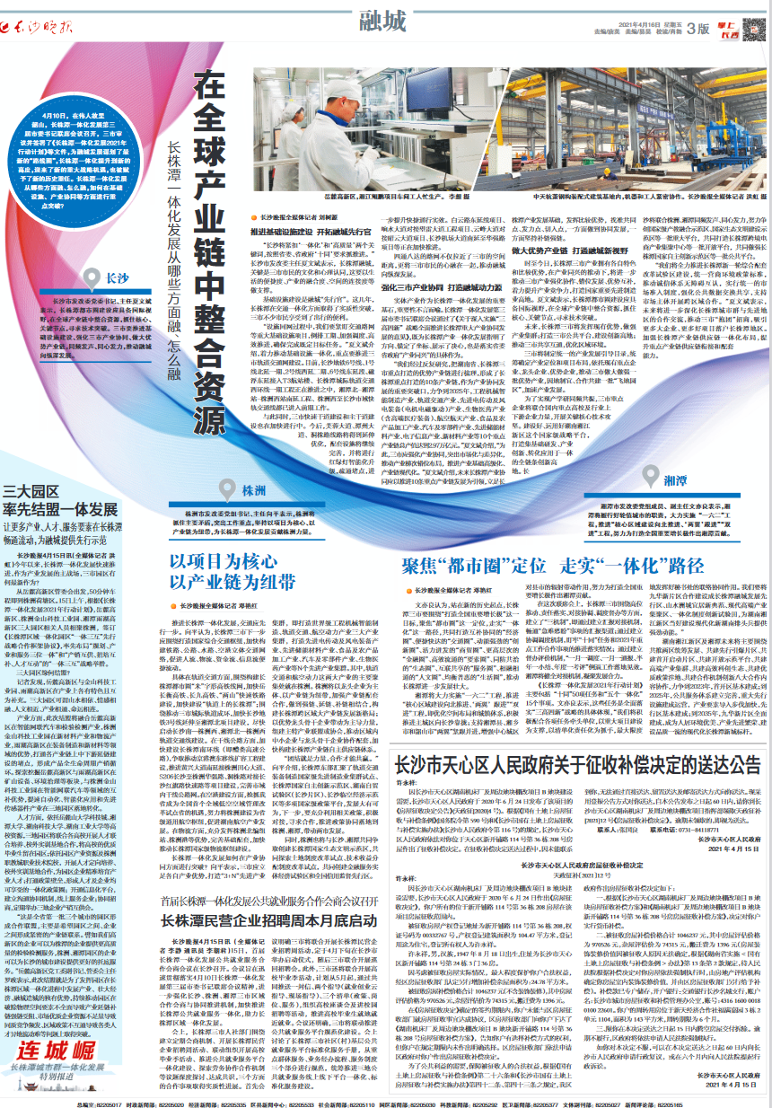 4月10日,在伟人故里韶山,长株潭一体化发展第三届市委书记联席会议召开,三市审议并签署了《长株潭一体化发展2021年行动计划》等文件,为融城发展谋划了最新的“路线图”,长株潭一体化提升到新的高度,迎来了新的重大战略机遇,也被赋予了新的历史重任。长株潭一体化发展从哪些方面融、怎么融,如何在基础设施、产业协同等方面进行重点突破?