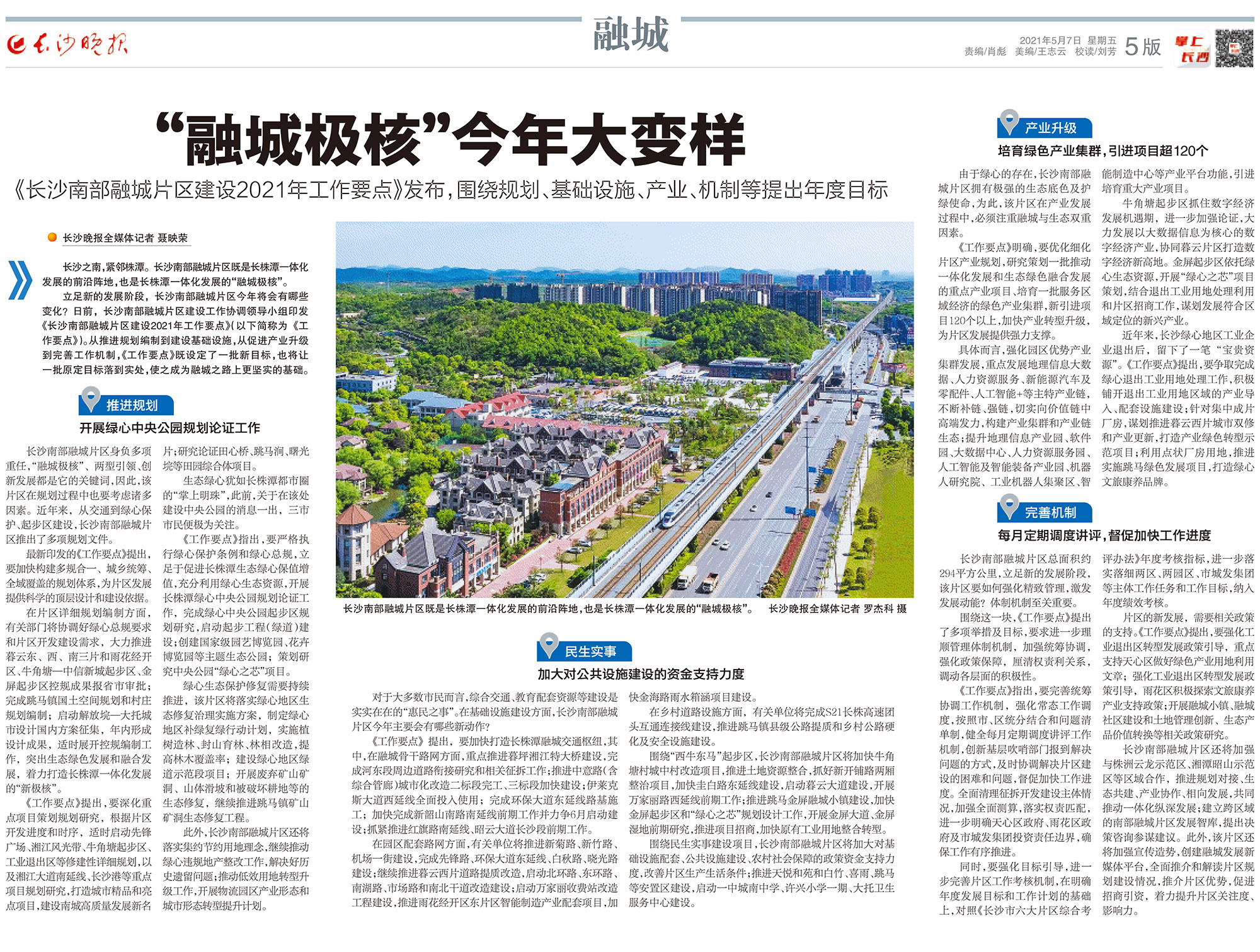 立足新的发展阶段,长沙南部融城片区今年将会有哪些变化?日前,长沙南部融城片区建设工作协调领导小组印发《长沙南部融城片区建设2021年工作要点》(以下简称为《工作要点》)。从推进规划编制到建设基础设施,从促进产业升级到完善工作机制,《工作要点》既设定了一批新目标,也将让一批原定目标落到实处,使之成为融城之路上更坚实的基础。