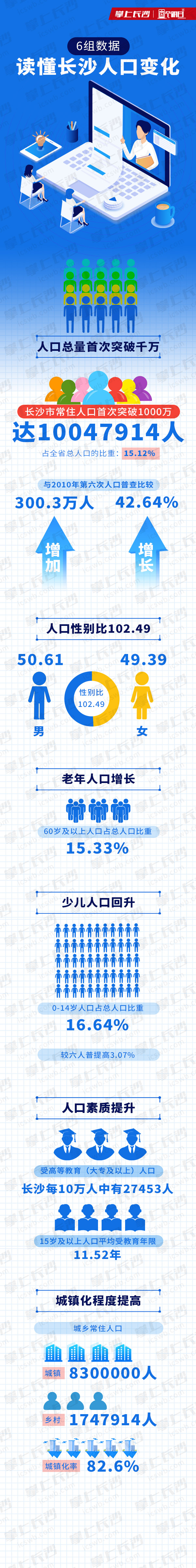 长沙进入千万人口俱乐部,这6组数据不得不看-九游网址 稿源:长沙道2021-05-19 22:2 您的浏览器不支持 audio 标签。 5月19日湖南发布第七次全国人口普查数据湖南常住人口6644.49万人长沙市常住人口首次突破1000万人口集聚效应显现上升4.41个百分点占全省总人口的比重达到15.12%长沙过去十年人口增长超300万跻身“千万人口俱乐部”十年来,长沙人口还有哪些变化?↓一图读懂↓ 【作者:杨晏彬 宋韧】 【编辑:杨晏彬】 长沙晚报社九游网址的版权声明 关键词:第七次全国人口普查 第七次全国人口普查>>我要举报