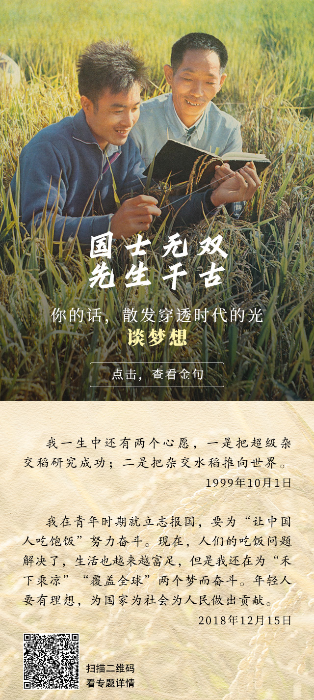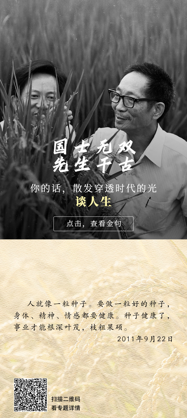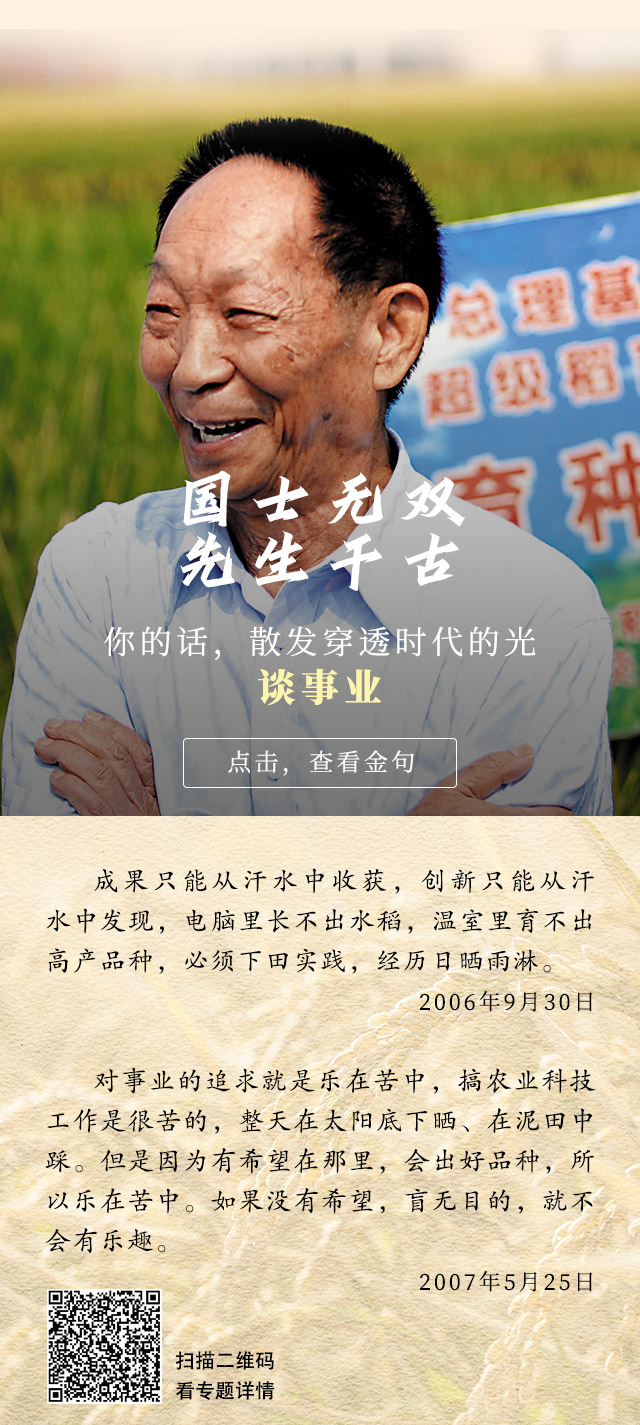 互动海报丨精神永存!袁隆平这些金句,值得我们铭记一生-九游网址 稿源:掌上长沙2021-05-24 20:0 您的浏览器不支持 audio 标签。 91年的时光,袁隆平院士对梦想、人生、科研、名利、农业有着不一样的理解。阅读几十年来他接受长沙晚报采访的报道,犹如乘坐一台时光穿梭机,感受这位可亲可敬“90后”的发展历程。送别袁老,他生前的这些金句,值得我们好好学习,铭记一生。 图/长沙晚报全媒体记者 罗杰科 周柏平 石祯专 陈飞 邹曙明 【作者:易隽 张日 赖立 王聘 罗敏】 【编辑:易隽】 长沙晚报社九游网址的版权声明 关键词:海报 袁隆平>>我要举报