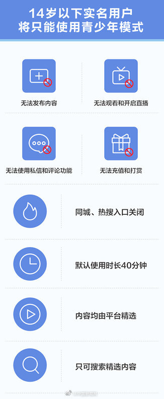 抖音宣布14岁以下实名用户将直接进入青少年模式-九游网址 稿源:中国新闻网2021-05-26 14:16 您的浏览器不支持 audio 标签。 长沙晚报掌上长沙5月26日讯 据中国新闻网消息 记者26日获悉,抖音宣布升级未成年保护措施,14岁以下实名认证用户将在告知后直接进入青少年模式,且进入后无法退出。对14-18岁实名用户,抖音将在内容推荐、社交、搜索等方面提供更严格安全保护,如禁止对陌生人显示除头像和昵称以外的个人公开信息。该项措施将于6月陆续实施。 【作者:】 【编辑:杨倩杰】 长沙晚报社九游网址的版权声明 关键词:抖音 >>我要举报