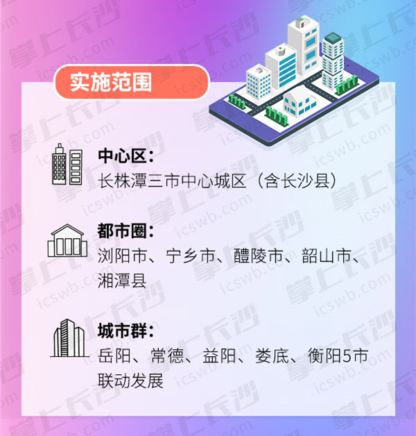 相比《长株潭区域一体化发展规划纲要》,此次的《行动计划》首次提出了三个层次的实施范围,分别对应不同层级的发展目标: